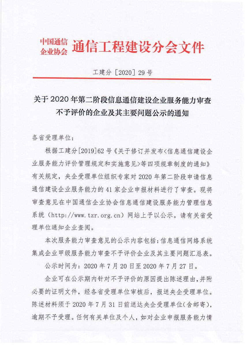 关于公布2018年第六阶段获得信息通信建设企业服务能力名单的通告