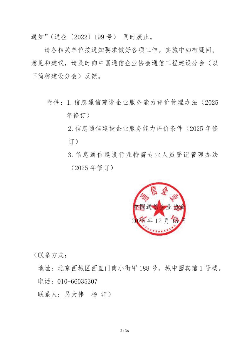 关于发布《信息通信建设企业服务能力评价管理办法(2025年修订)》等三项管理制度的通知
